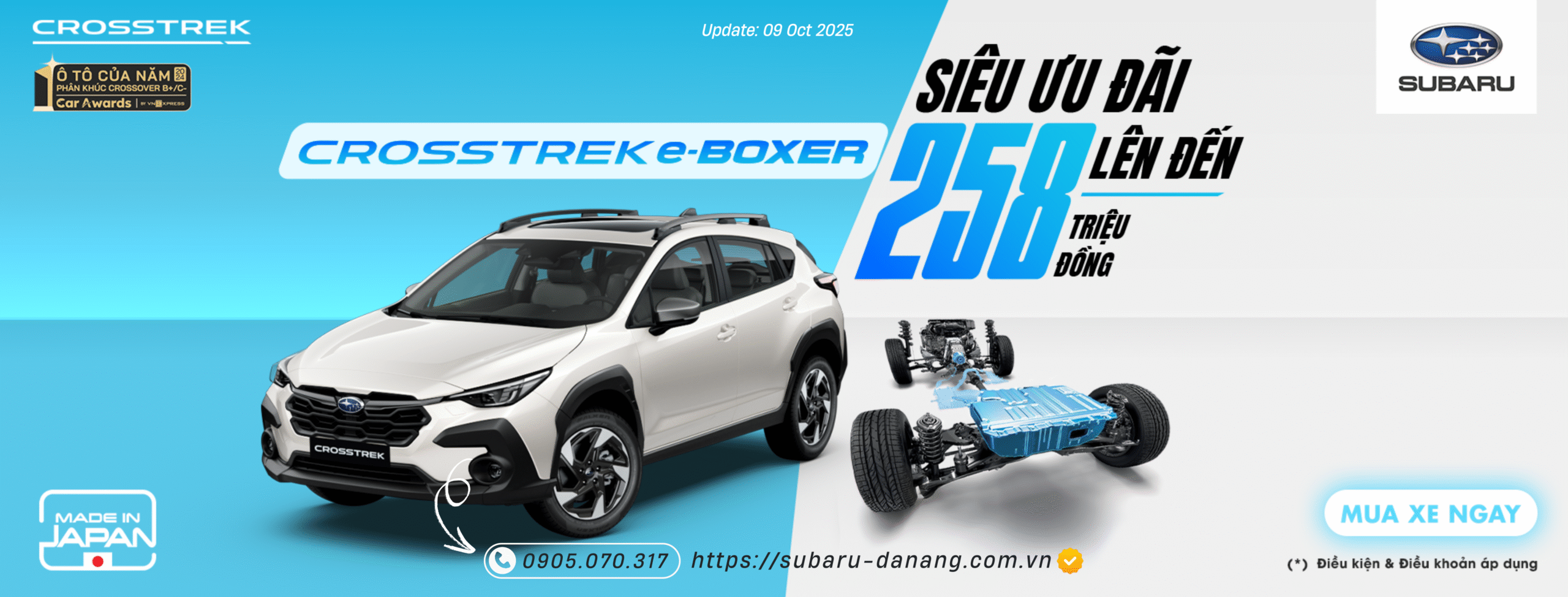 Trong tháng 11/2025, Subaru Crosstrek có các ưu đãi hấp dẫn. Phiên bản 2.0i-S EyeSight có giá đặc biệt là 899 triệu VNĐ, trong khi phiên bản 2.0i-S EyeSight e-Boxer Hybrid là 1.029 triệu VNĐ. Các chương trình này bao gồm ưu đãi tiền mặt và có thể kèm theo các lợi ích khác như bảo hành 5 năm không giới hạn số km.